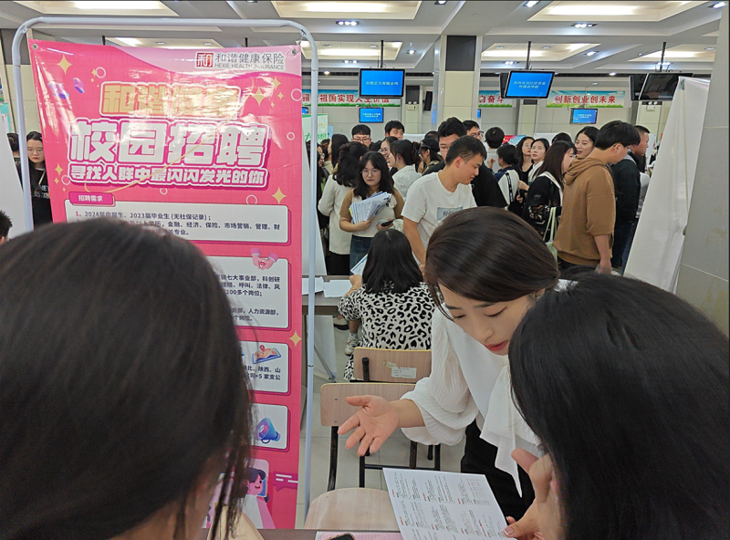 在各大高校校区活动现场,和谐健康总分支公司各类岗位吸引了众多应届生的目光。工作人员就2024年校园招聘岗位、福利待遇、培养晋升机制等向毕业生们做内容宣讲,详细介绍了和谐健康的发展历程、企业文化、业务领域以及招聘岗位的具体要求和发展前景等内容,让在场的毕业生对公司有了更加全面的了解。