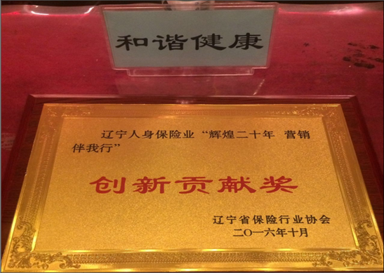 11月18日,辽宁省保险行业协会隆重召开辽宁人身保险业“辉煌二十年 营销伴我行”表彰大会,对在辽宁寿险营销20年历程中涌现出的优秀单位及先进个人进行表彰。和谐健康保险辽宁分公司由于在行业中的优异贡献和服务创新,最终荣获“创新贡献奖”,为我司的荣誉殿堂又增添了新的光彩。